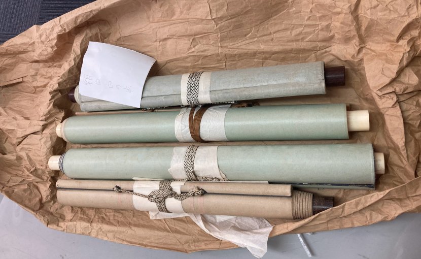 ご自宅の蔵の片付けで古そうな掛軸,書,仏画,日本画が出てきて「もう使わないので、捨てる前に価値が知りたい」との事で、ご来店下さいました。