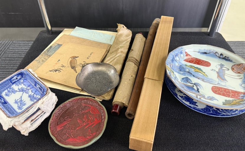 浅口市金光町:骨董品,中国美術,染付,堆朱,皿,錫,茶托,掛軸,色紙,備前焼など多数を店頭査定,買取(持ち込み)しました。